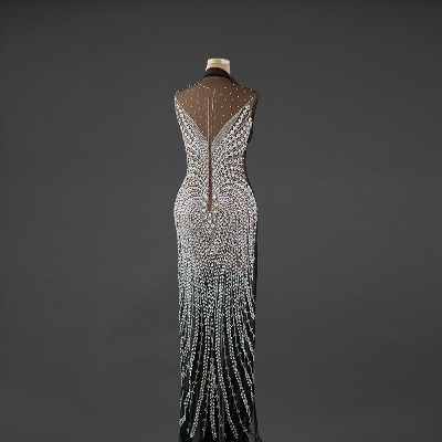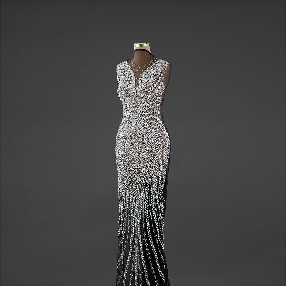 پنل لباس مجلسی مشکی با سنگ دوزی نقره ای